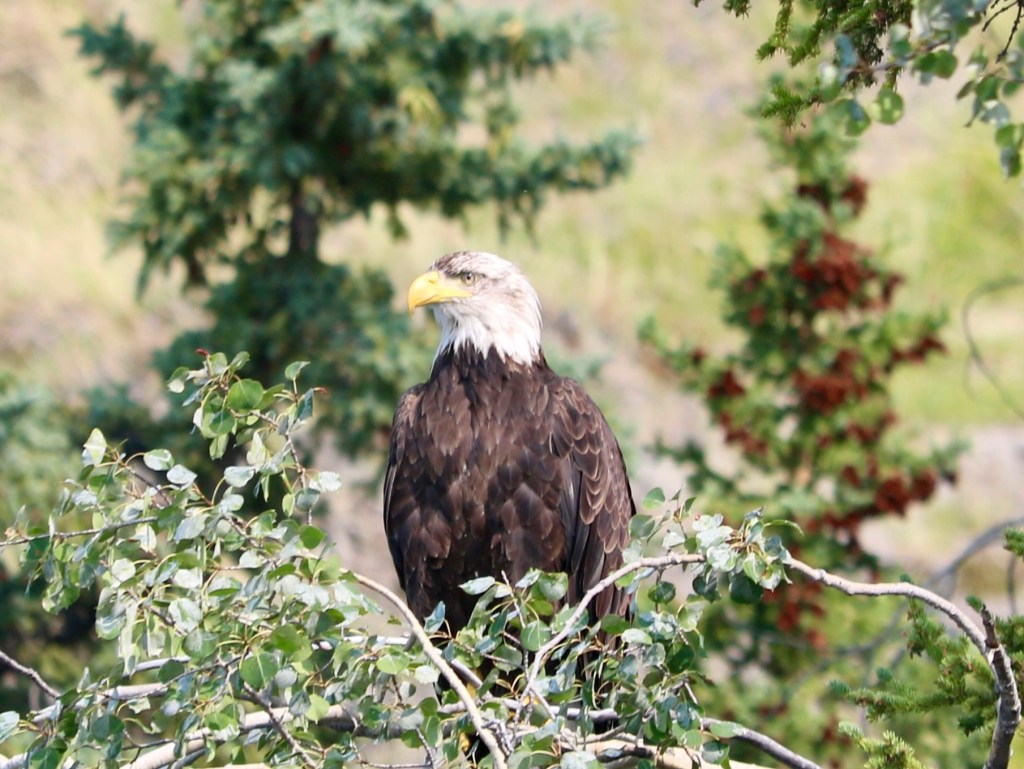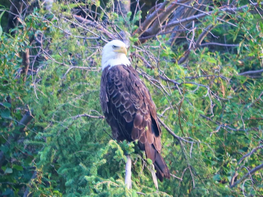 Day four was titled, “Let’s see how far I can go!” Starting off in a thick fog, I spotted a moose on the left riverbank and another about an hour later on the opposite side. And many more eagles. When I reached Big Salmon, I stopped for a quick lunch break and quickly got back on the river after hearing distant rumbles. The thunderstorm rolled in and before too long I left the water to wait it out… and wait… and wait…. Over an hour of POURING rain and LOUD thunder and lightning. When the coast was clear, I launched my canoe back on the river and that was the end of that (until that night at Twin Creeks… another storm! My MSR Hubba proved itself on this trip).