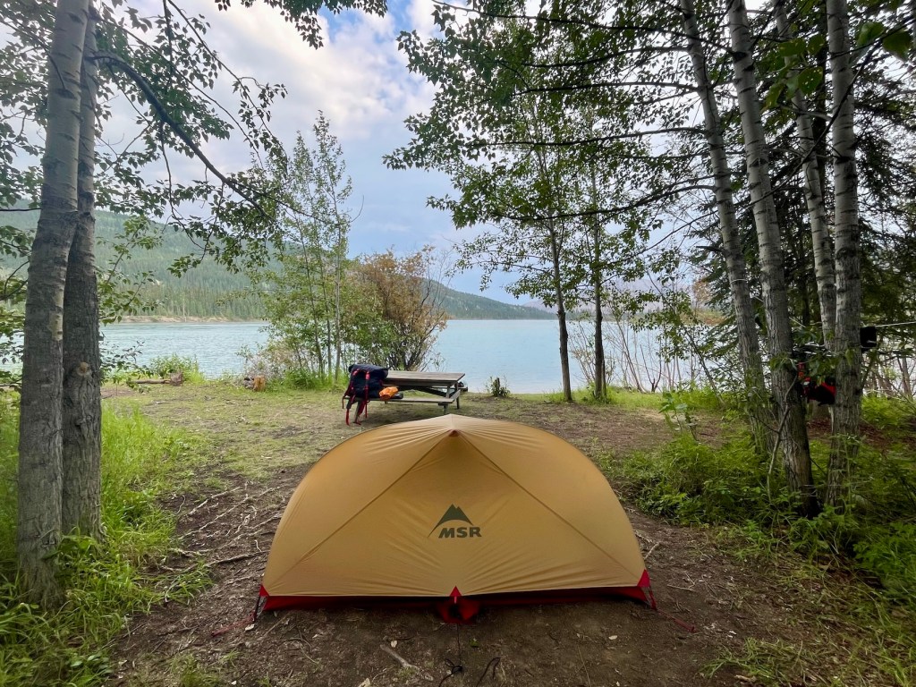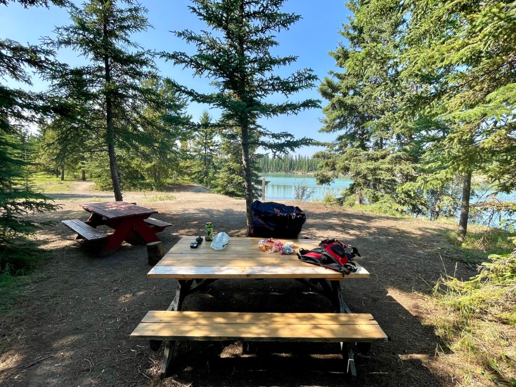 Day one started off in Whitehorse paddling along the fast-flowing Yukon River, passing by Egg Island and spotting several bald eagles on the high riverbanks. I continued along and passed by several campsites before Lake Laberge, stopping for lunch at the horseshoe-bend site before Upper Laberge area. After lunch, I continued on to Lake Laberge and paddled along the right-hand side of the lake to reach Laurier Creek. Thankfully, Lake Laberge was calm and glassy and didn’t present any major challenges (but no tailwind… dang!). Canoeing into the sunset was absolutely spectacular…and swimming in Lake Laberge was refreshing!