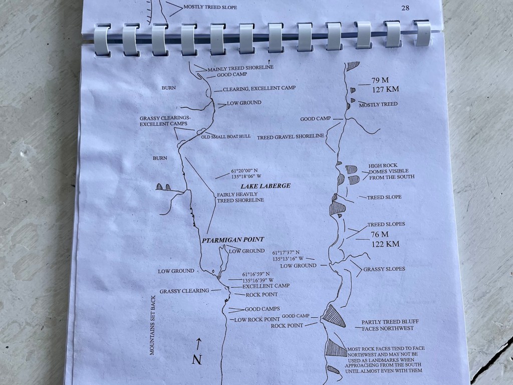 Paddlers should have wilderness navigation and orienteering skills, with the ability follow maps and recognize landmarks. There is minimal signage along the river. I suggest picking up a copy of Yukon River (Carmacks-Dawson) by Mike Rourke for trip-planning information and a thorough Yukon River paddling map. I brought a copy with me to review each night and reference during the day (in this waterproof map case). Buy your copy from Up North Adventures and they will mail for an additional fee.
