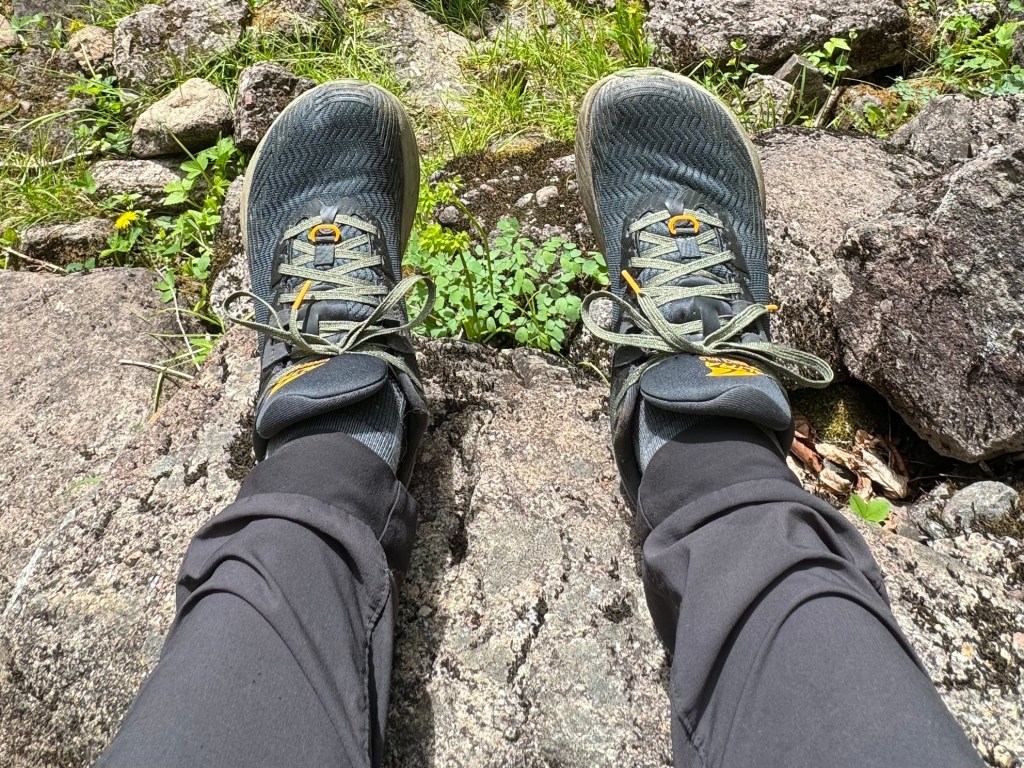Choose your preference for footwear. If you’re unsure what to wear, I suggest a pair of mid-hikers for extra ankle support. Personally, I prefer my Altra Trail Runners for day hiking — they’re shaped like a foot and so comfortable. Whatever you choose, just make sure your feet are comfy (blisters suck).