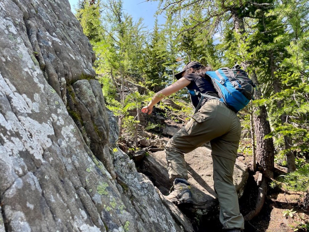 If you’re new to hiking in grizzly territory, read up on becoming bear aware before heading out. I’m not a bear bell fan (they don’t work…) but I recommend carrying bear spray for close-up encounters. If you’re worried about bears, hike in a group and talk loudly on the trail to announce your presence.