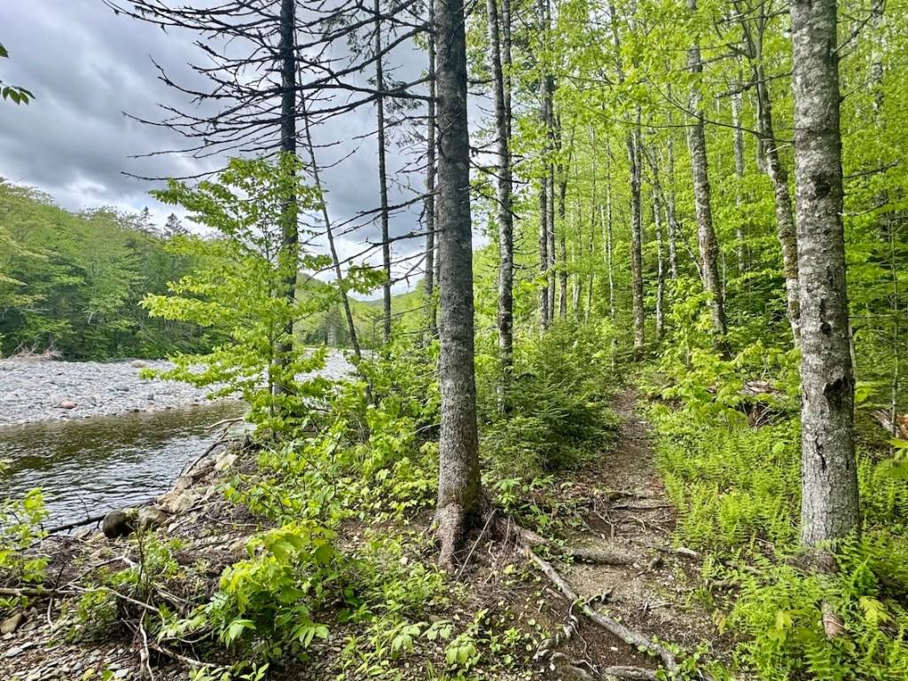The beginning of the North River Falls hike is fairly straightforward. After a steep climb, turn left onto an old cart road built by Scottish settlers. You can explore remnants of the settlement on this well-trodden trailway. It’s an easy and gradual walk through the forest initially — but can be quite wet in June. I wore my Altra Trail Runners. If you’re looking for an easy route, you could always hike the first few kilometres and then turn around. Not a bad option for trail running either. Moose tracks and droppings were frequent along the way. If you come across a moose, give them lots of space.