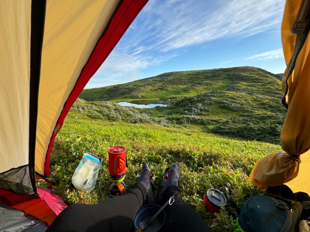 The final 2.5 km brought us across a marshy meadow with dead spruce and tuckamore before reaching camp on a ridgeline beside Blair River Valley. We didn’t roll into camp until around 9:15 pm, but the views and late golden light made it the most memorable night.