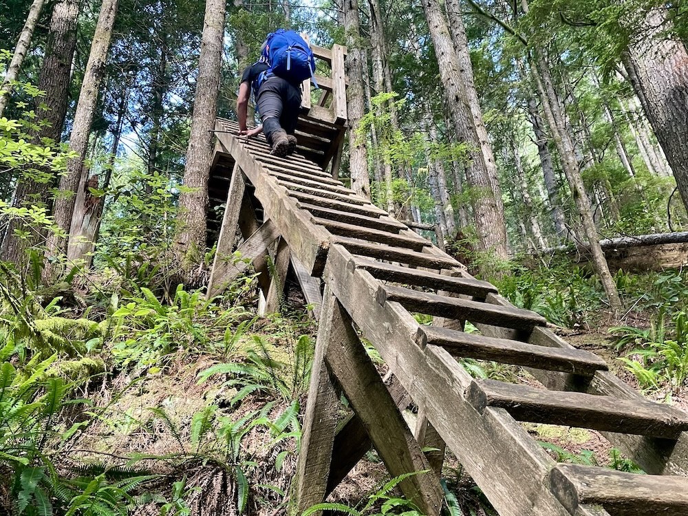A. This is a very technical hike. While some sections feel more manageable, the combination of ladders, mud, tides, weather, and long days makes the West Coast Trail an advanced backpacking experience overall.